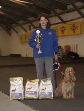 1. místo Kateřina Nožičková a anglický kokršpaněl Vandal Brakemon a zároveň získal ocenění Nejlepší anglický kokršpaněl s PP